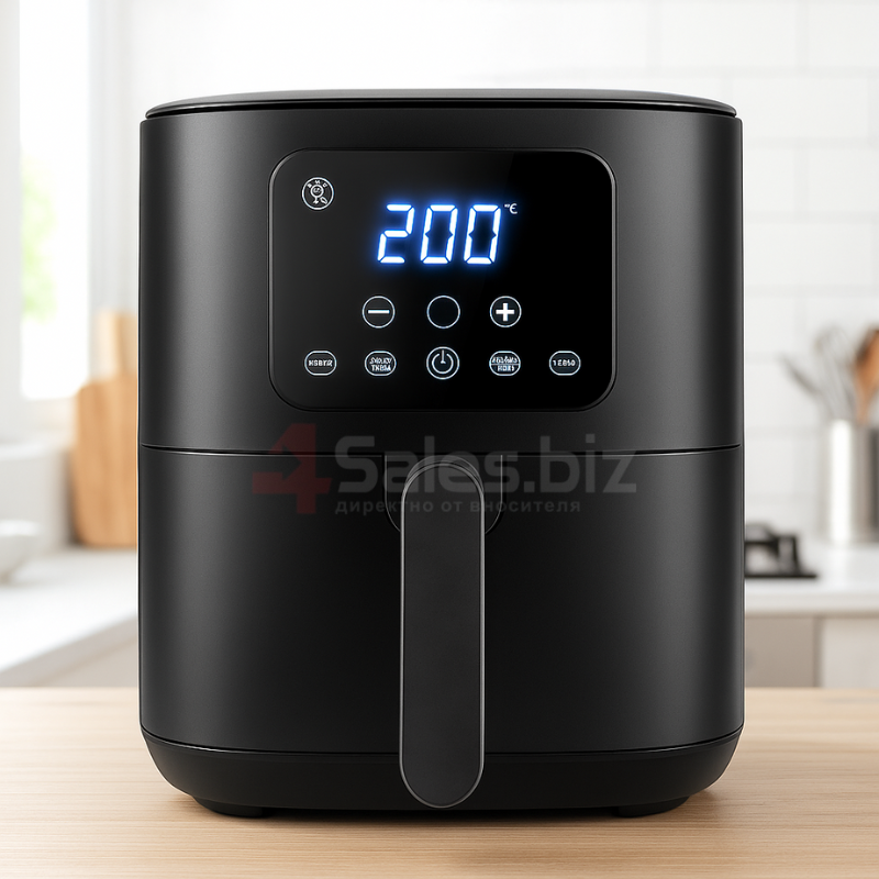 С мощен вентилатор и равномерно нагряване до 200°C, той приготвя храната хрупкава отвън и сочна отвътре, без дим, без миризми и без мазна следа.