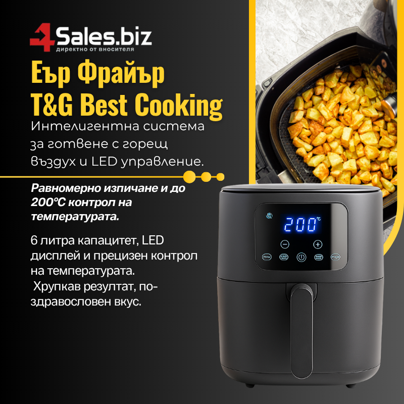 Еър Фрайър T&G Best Cooking е високотехнологичен въздушен фритюрник, който готви с помощта на циркулиращ горещ въздух, вместо мазнина.